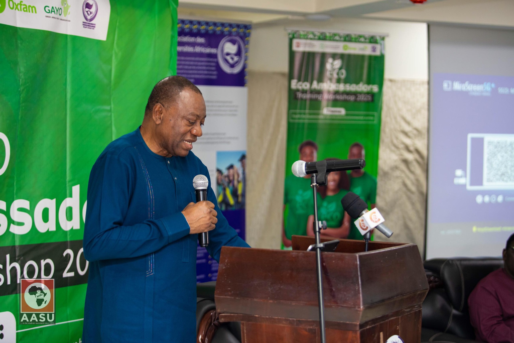 Prof. Olusola B. Oyewole (AAU Secretary General) challenged participants to be bold Eco Ambassadors and use knowledge as a tool for environmental justice.